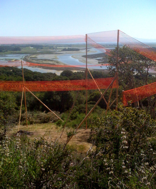 The photograph above shows the poles and netting recently erected to match our drawings for a new custom home, designed to meet all regulations. The homeowners will enjoy an unusual view toward Monterey Bay overlooking the Elkhorn Slough. The poles and netting can be erected by the owner, contractor, or a specialist like Steve Babcock (831-657-9831).