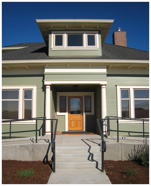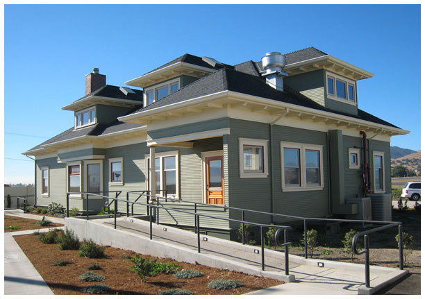 Known as the Chapman Foster residence (ca. 1903), this old house has been given a new life as the offices for Yuki Farms. It will compliment the cluster of buildings where they sell organic produce and give educational tours of the farm. The damaged roof was replaced with a higher pitched structure with dormers to allow for second story offices. The interior on the first story is also being renovated with new office space and upgraded restrooms. Much of the original detailing has been maintained inside and out.